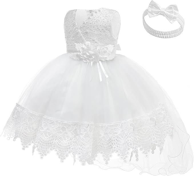 • Feature: Round and V neck, sleeveless, back zipper closure, big bowknot, lace flower ruffle print, cute headband, let baby charismatic, the best gift for your baby