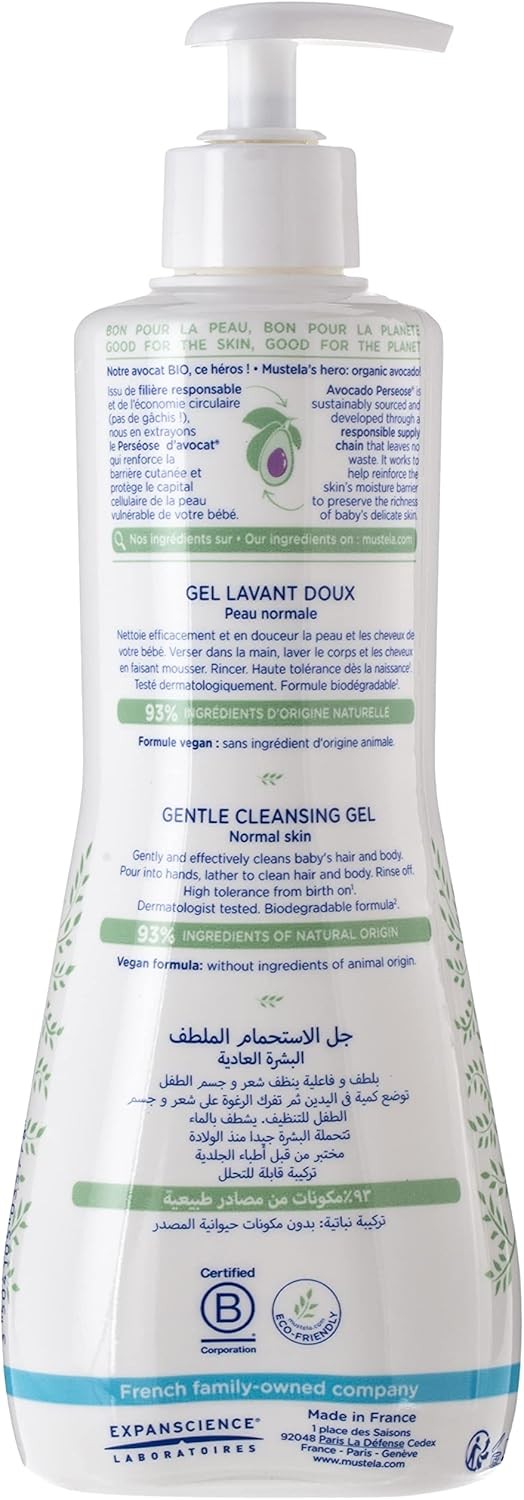 •  Mustela's gentle cleansing gel safely and effectively cleans and soothes your baby's delicate hair and skin.